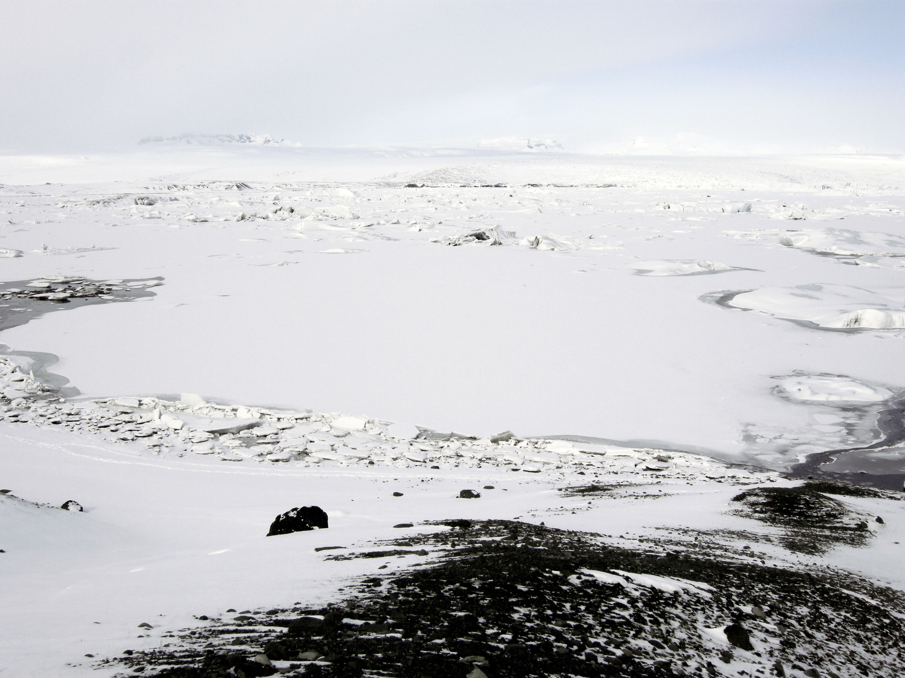 This is a piece done my Katie Paterson, and it is a phone call that anyone can call and listen to an Icelandic glacier slowly melt away. Paterson has two photos showing how the glacier looked when she started this project and how it looked about a year later.