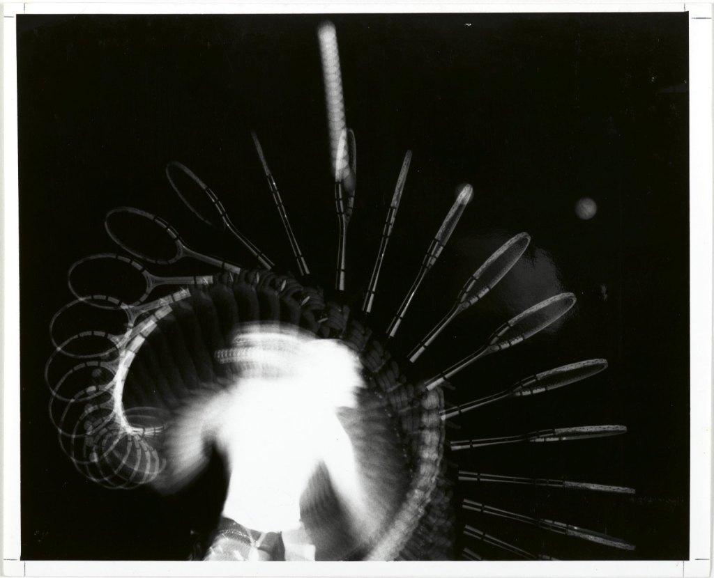 This image shows clear movement of a tennis racket serving a tennis ball in the air. I’m assuming the way this photo was taken was they had the model perform the movement of serving the tennis ball and then proceed to take a burst of images as he does so, then merging all the images together to create this piece, but that’s only a hunch. The image reminds me of stop motion of how we can see each movement he did in order to serve the ball.